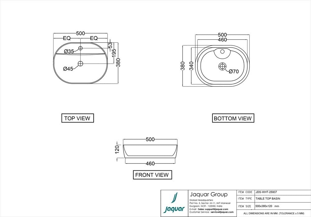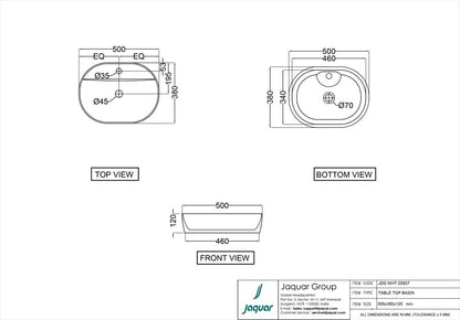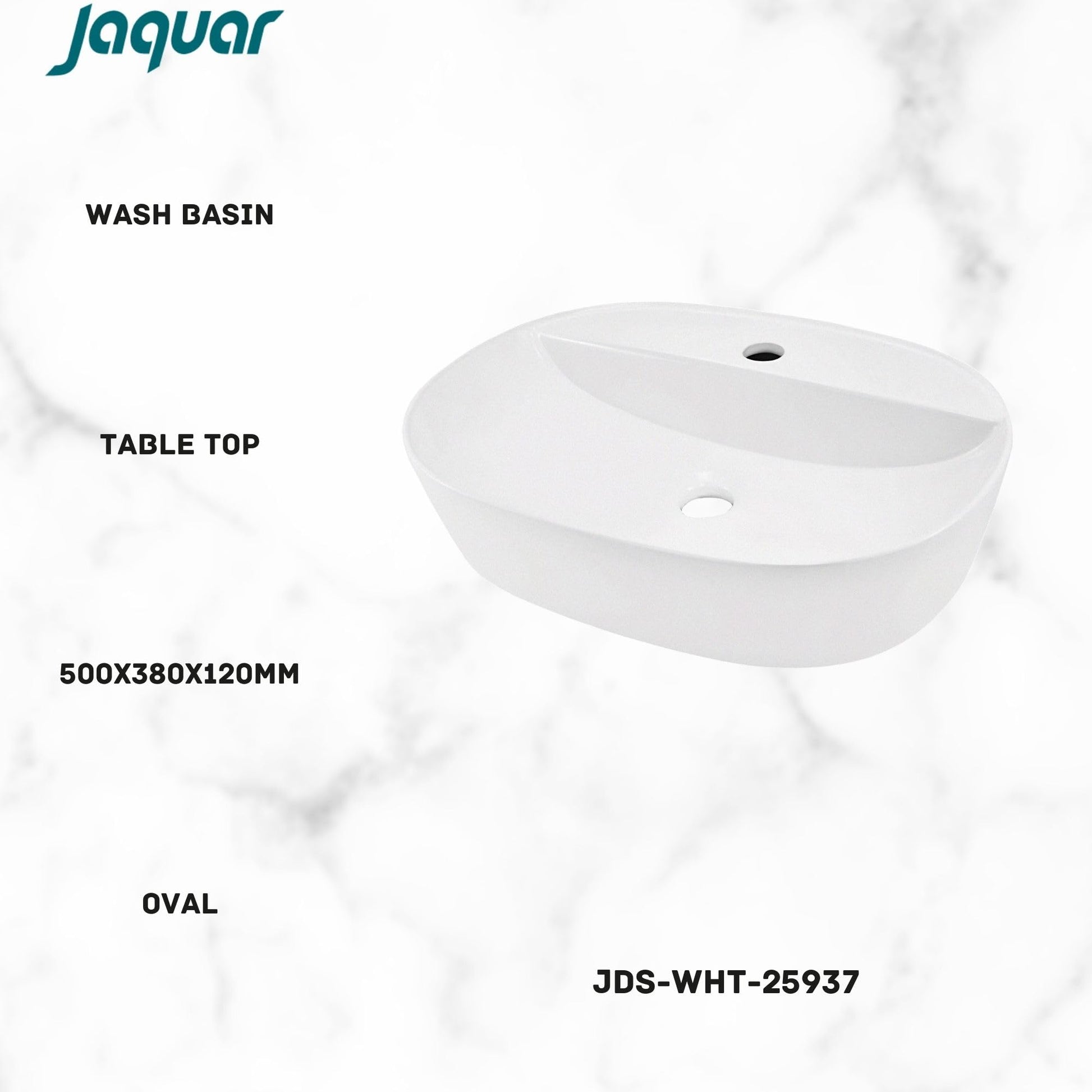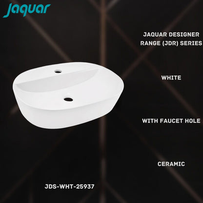 JAQUAR JDR (JAQUAR Designer Range) Series Table Top WASH Basin (White) with Faucet Hole | 500x380x120mm, Oval | Ceramic Basin/Sink for Bathroom, Living Room | Table/Counter Top | JDS-WHT-25937