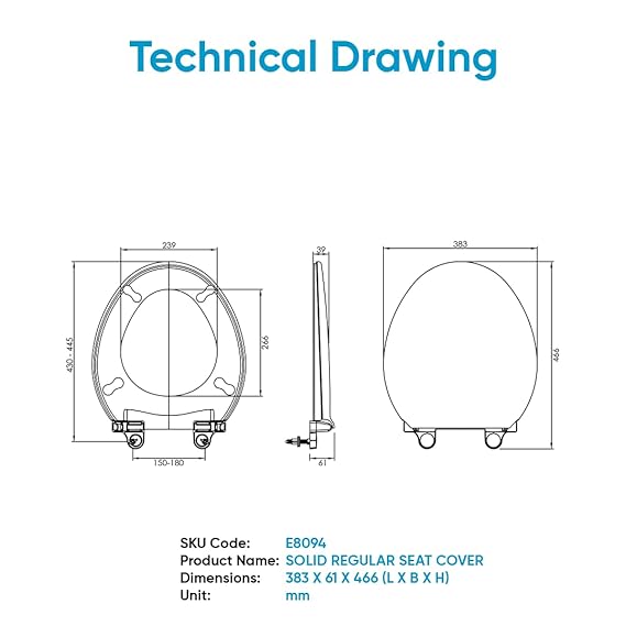 Hygiene and Maintenance: The smooth, non-porous surface of the Parryware Solid Regular Seat Cover resists the buildup of dirt, grime, and bacteria, making it easy to keep clean and hygienic. Stain-resistant properties help in maintaining the seat's appearance over time, preventing discoloration. Regular cleaning is simple with Parryware Shower Pro, a gentle cleaner to maintain its pristine condition.
