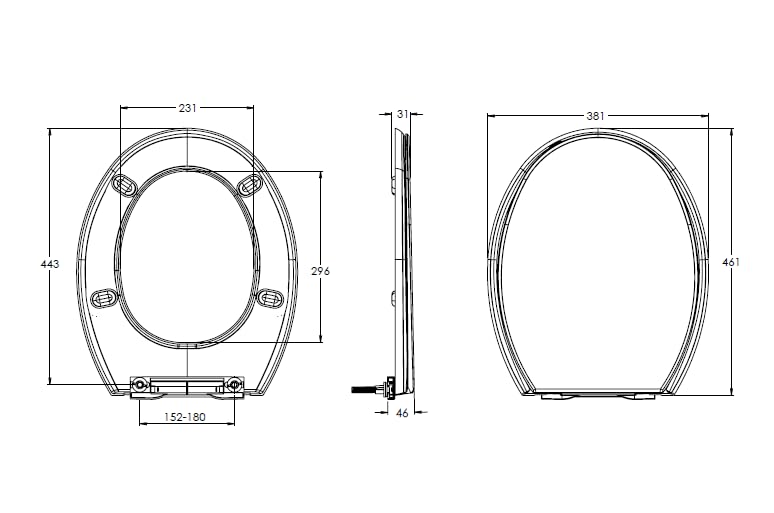 SPECIFICATIONS: Material: PLASTIC / PVC; Color/Finish: WHITE; Shape: OVAL; Soft Close: NO